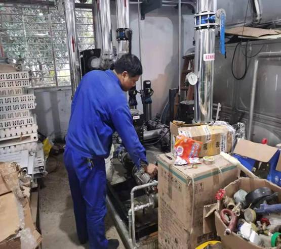 (圖為維修人員在特飛所小區熱交換站檢查供熱設備)